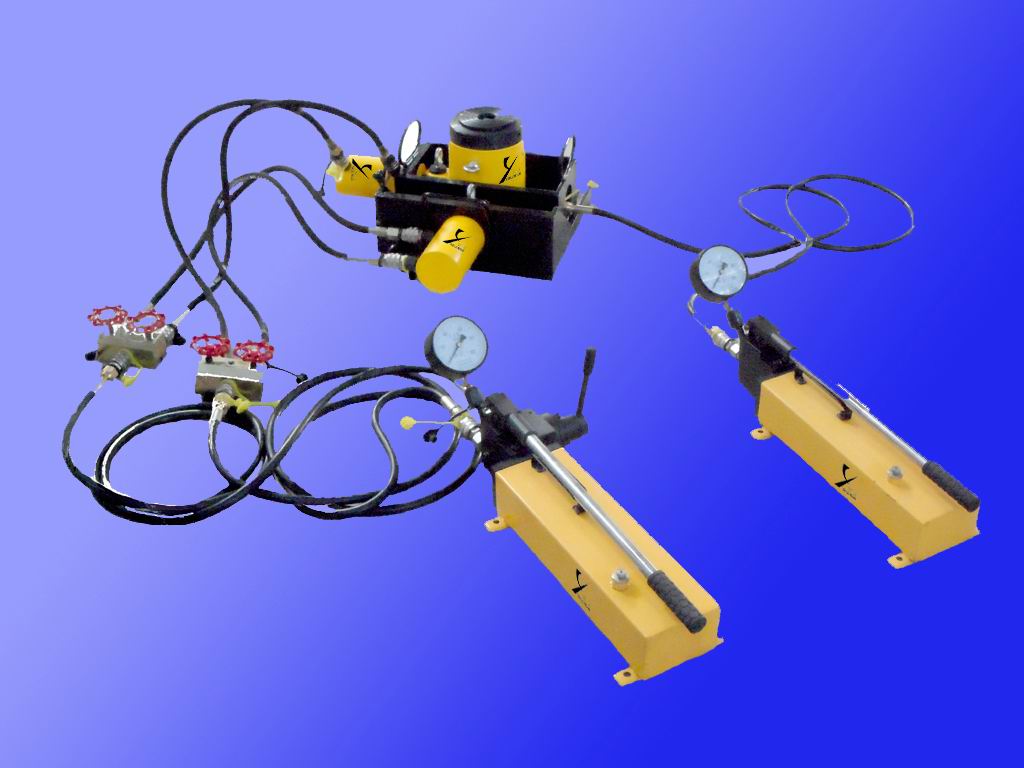 WCH系列三維調整組合機是與我廠生產的超高壓單、雙手動泵配套使用的一種三坐標頂升、位移專用工具,廣泛應用于造船、鐵路公路橋梁或類似橋梁重物的位移作業(yè)。進行低高度、短距離的垂直方向(Z)橫向(X)以及縱向(Y)的位移。該產品的滑移摩擦副由底座、垂直頂升座上的不銹鋼板與垂直頂升座、垂直頂升千斤頂(彈簧復位。如客戶需要也可以定做雙油路)底部的高強度滑移板組成,具有摩擦系數小,且滑移平穩(wěn)。該產品具有設計先進、結構合理、承載能力大、位移準確、安全可靠、維修方便、勞動強度低、提高效率等特點。垂直頂升千斤頂可作為液壓千斤頂單獨使用。