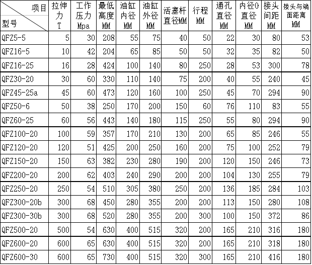 QFZ型張拉千斤頂(簡稱千斤頂)系根據(jù)國外OLM標準的先進技術(shù)結(jié)合我國實際情況而研制的產(chǎn)品。配以本廠生產(chǎn)的超高壓電動油泵站或手動泵,完成千斤頂?shù)膹埨δ埽ㄒ嗫勺黜斏茫?。操作簡便,維修保養(yǎng)容易?;钊麠U表面鍍硬鉻(活塞頭燒銅焊)。廣泛應用于建筑、造船、冶金、采礦、石油化工、鐵道等工程以及其它工業(yè)上。